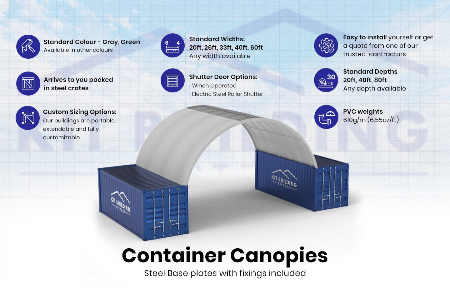 - Fabric Materials: We offer a 5-year product warranty on our PVC 23 oz/sy (610g/m²) external building fabrics, covering you against material defects. Kit Buildings